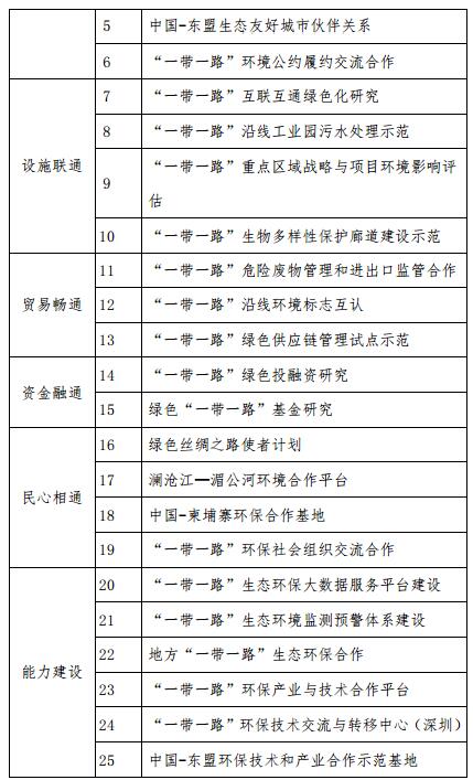 規(guī)劃涉及25個重點(diǎn)項(xiàng)目,包括政策溝通類6個,設(shè)施聯(lián)通類4個,貿(mào)易暢通類3個,資金融通類2個,民心相通類4個,能力建設(shè)類6個。