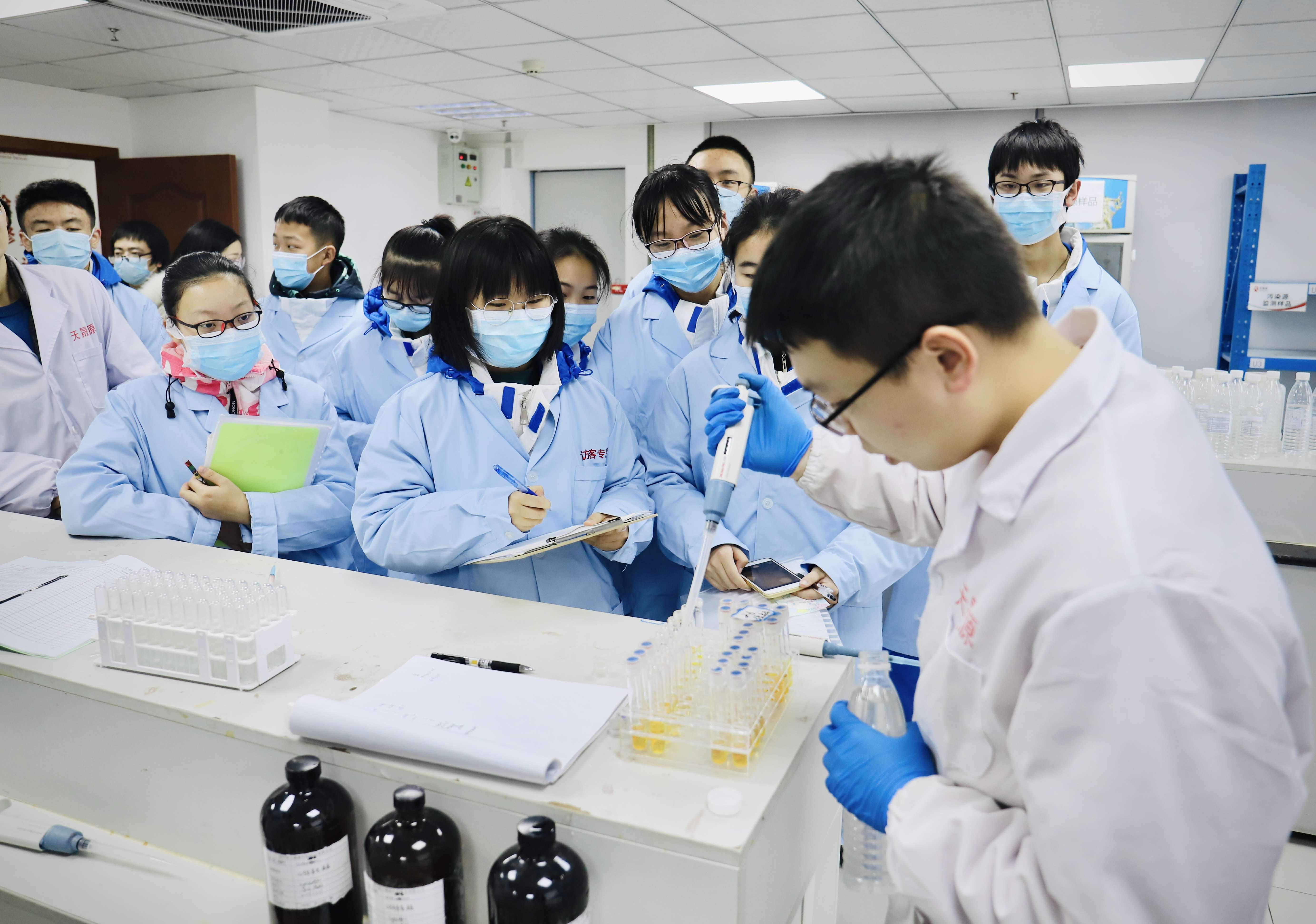 成都英才學(xué)校師生們在天晟源環(huán)保實(shí)驗(yàn)室工程師張衛(wèi)威的帶領(lǐng)下參觀了實(shí)驗(yàn)室全貌,對樣品檢測全處理流程有了直觀的感受。隨后12名同學(xué)分為三組,分別觀看了高錳酸鹽指數(shù)、氨氮、溶解氧三項(xiàng)實(shí)驗(yàn)指標(biāo)的檢測全流程演示,并在實(shí)驗(yàn)室技術(shù)骨干的指導(dǎo)下現(xiàn)場進(jìn)行了實(shí)操,真切地體驗(yàn)了一瓶水體是如何成為嚴(yán)謹(jǐn)?shù)目茖W(xué)數(shù)據(jù)的過程。