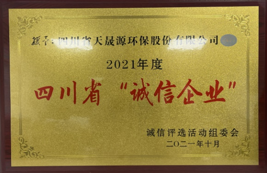在以公司總經理張恒同志為首的公司經營管理團隊帶領下,天晟源環(huán)保自成立以來,堅持以人為本,著力構建和諧勞動關系,公司經濟效益和社會效益得到了全面發(fā)展,公司先后獲得成都市“守合同重信用”企業(yè)稱號、中國環(huán)境保護產業(yè)協(xié)會企業(yè)信用評價AAA等級、國家稅務總局四川省電子稅務局納稅信用狀態(tài)評價A級等眾多誠信榮譽,具有極高的社會信譽認可度及行業(yè)誠信贊譽度。