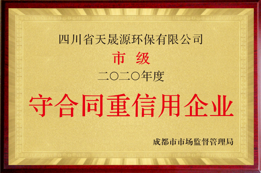 圖3 天晟源環(huán)保獲得成都市“守合同重信用”企業(yè)稱號