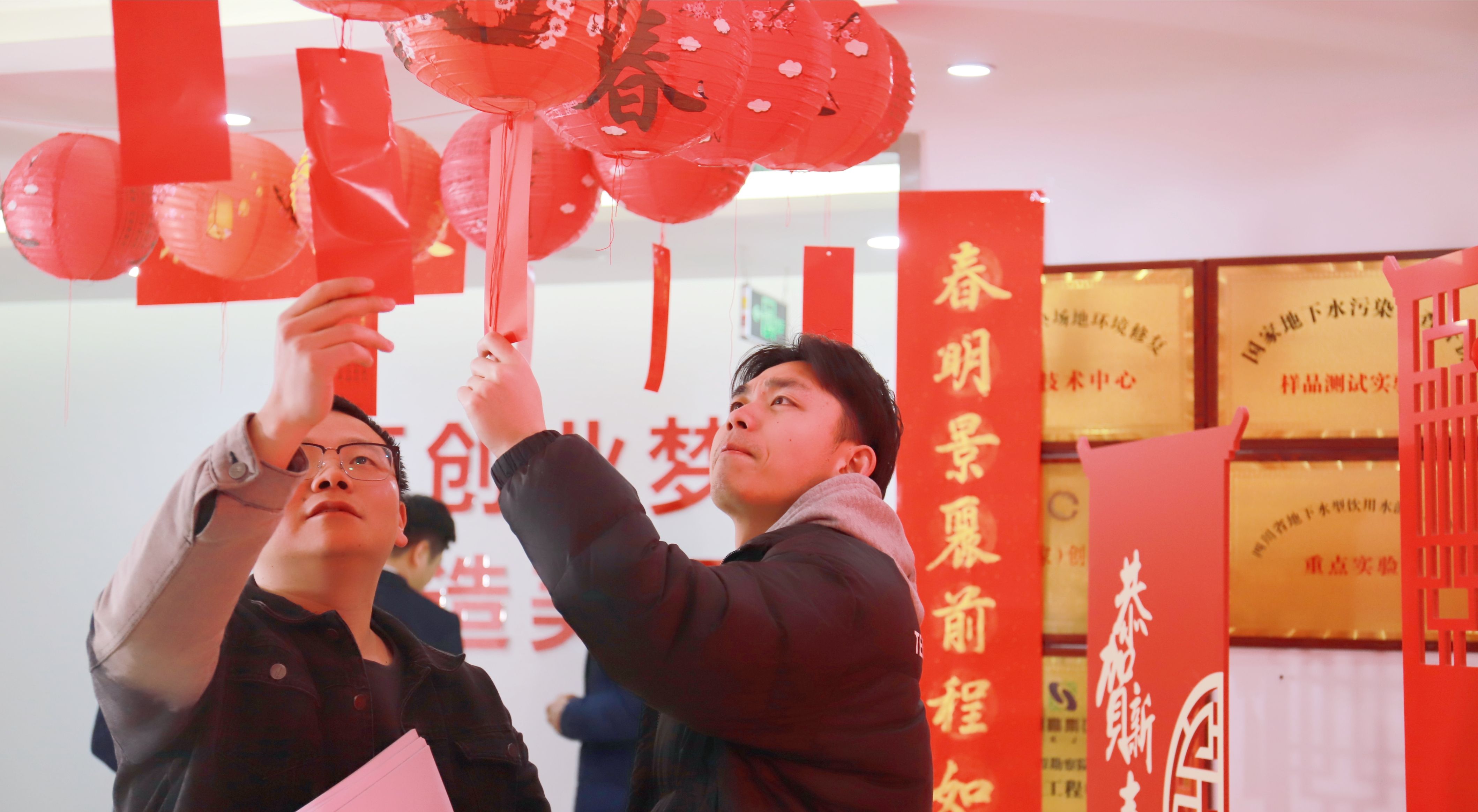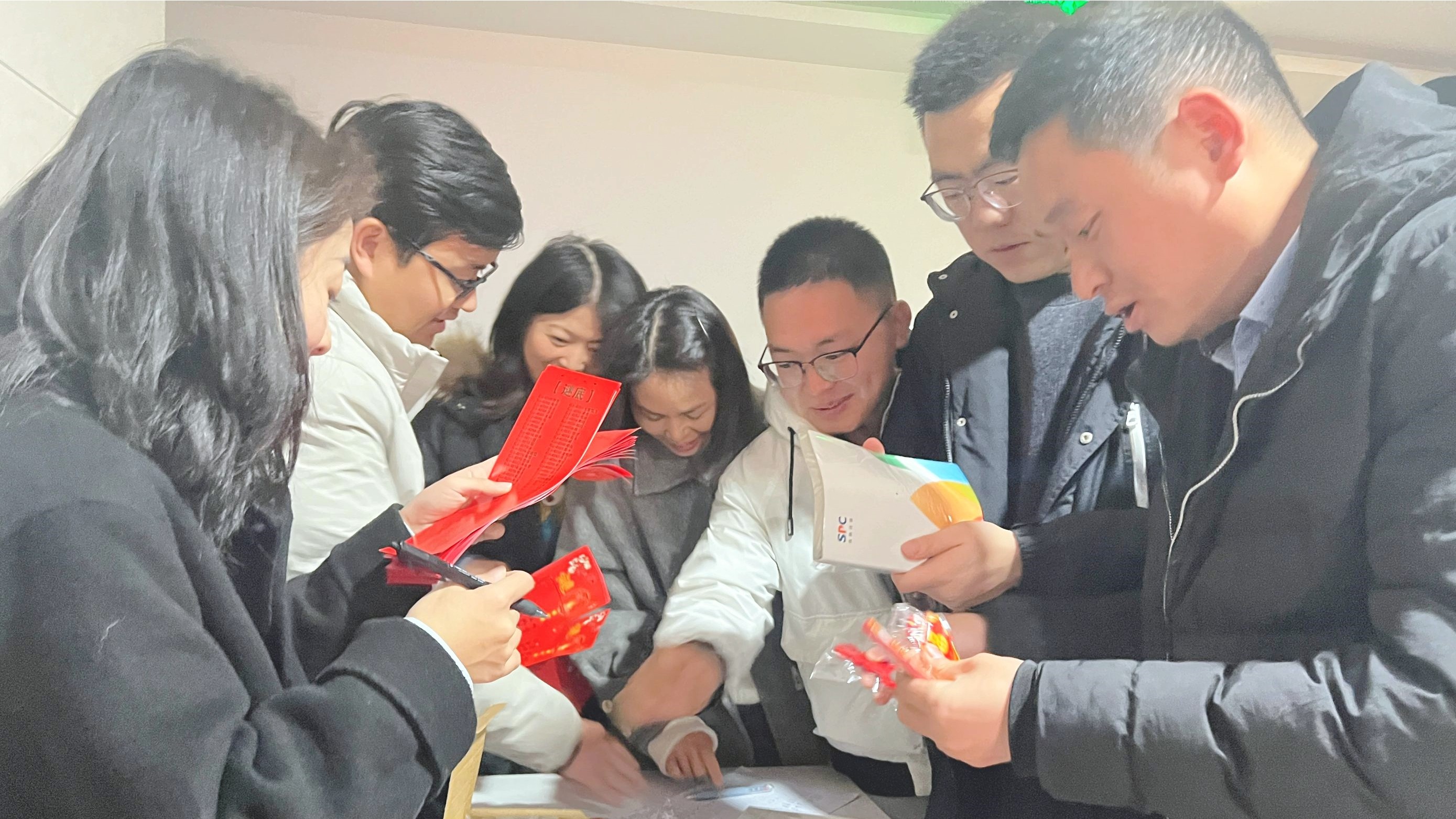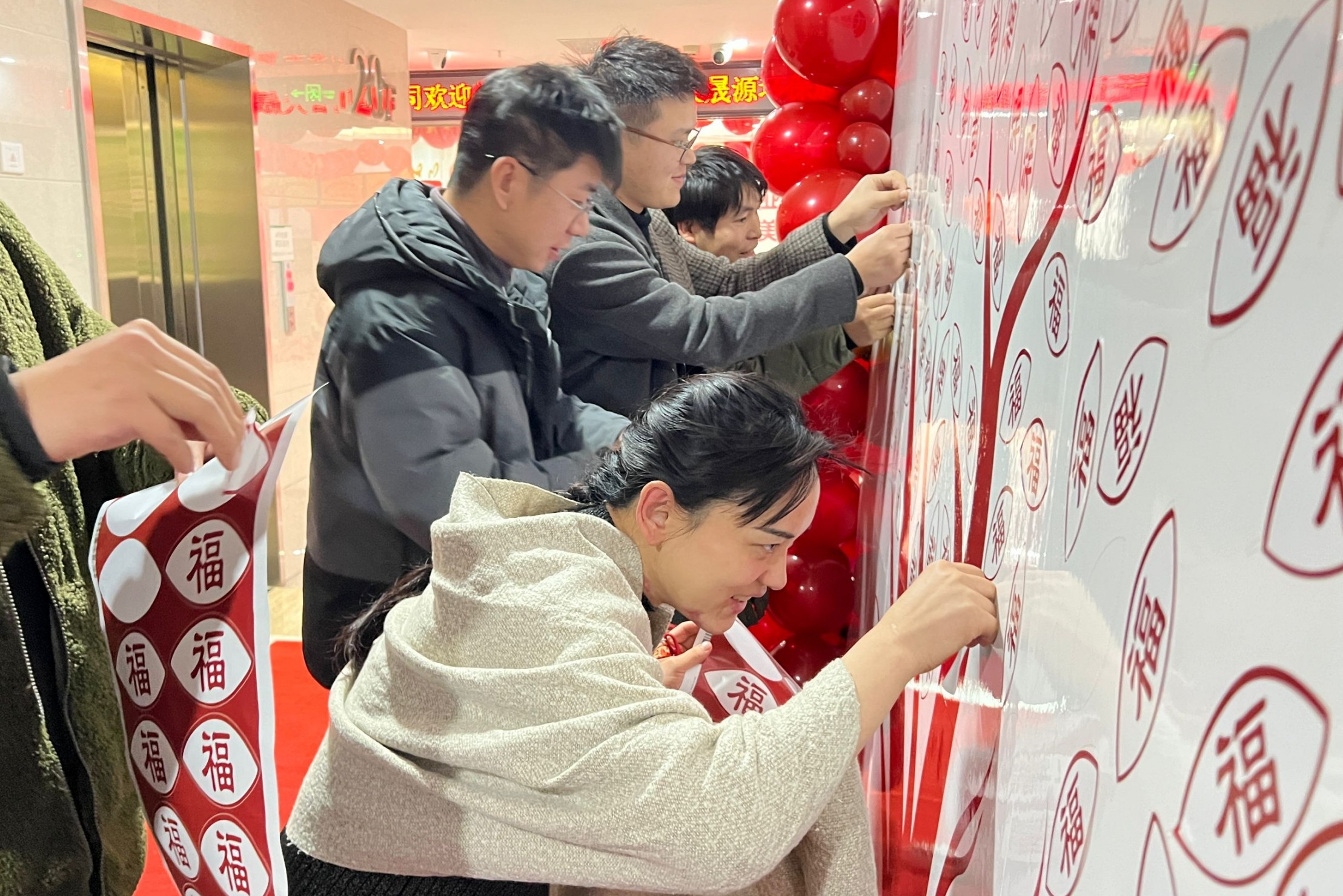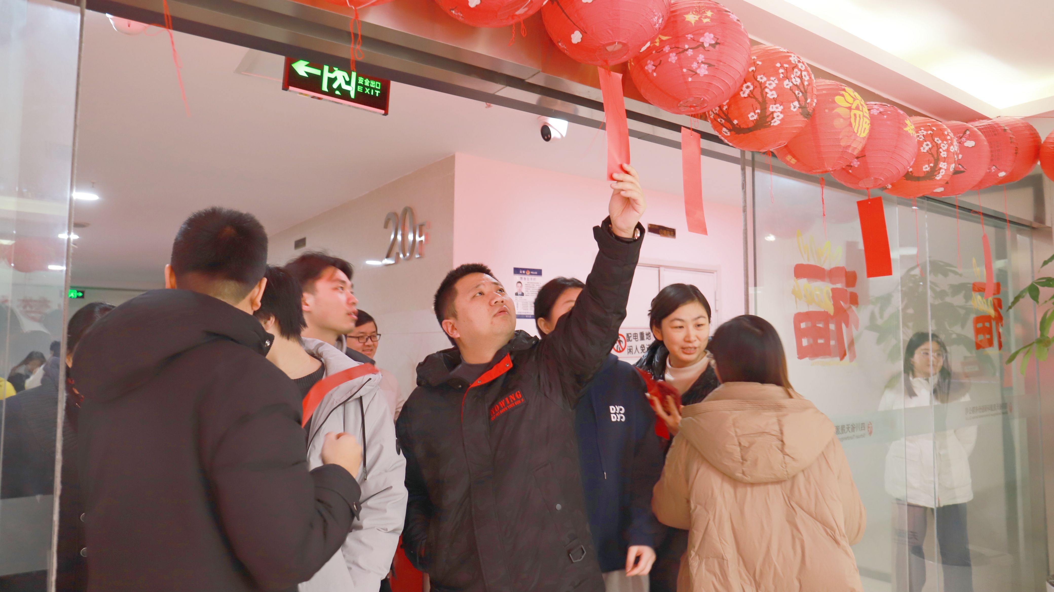 公司大廳上方掛滿了寓意吉祥的紅燈籠,每個(gè)燈籠里都藏有一個(gè)有趣的燈謎。員工們通過選擇并回答燈謎展現(xiàn)自己的聰明才智,答對者也獲得了公司特別準(zhǔn)備的新春“福氣小禮品”,寓意著新的一年福氣滿滿、好運(yùn)連連。