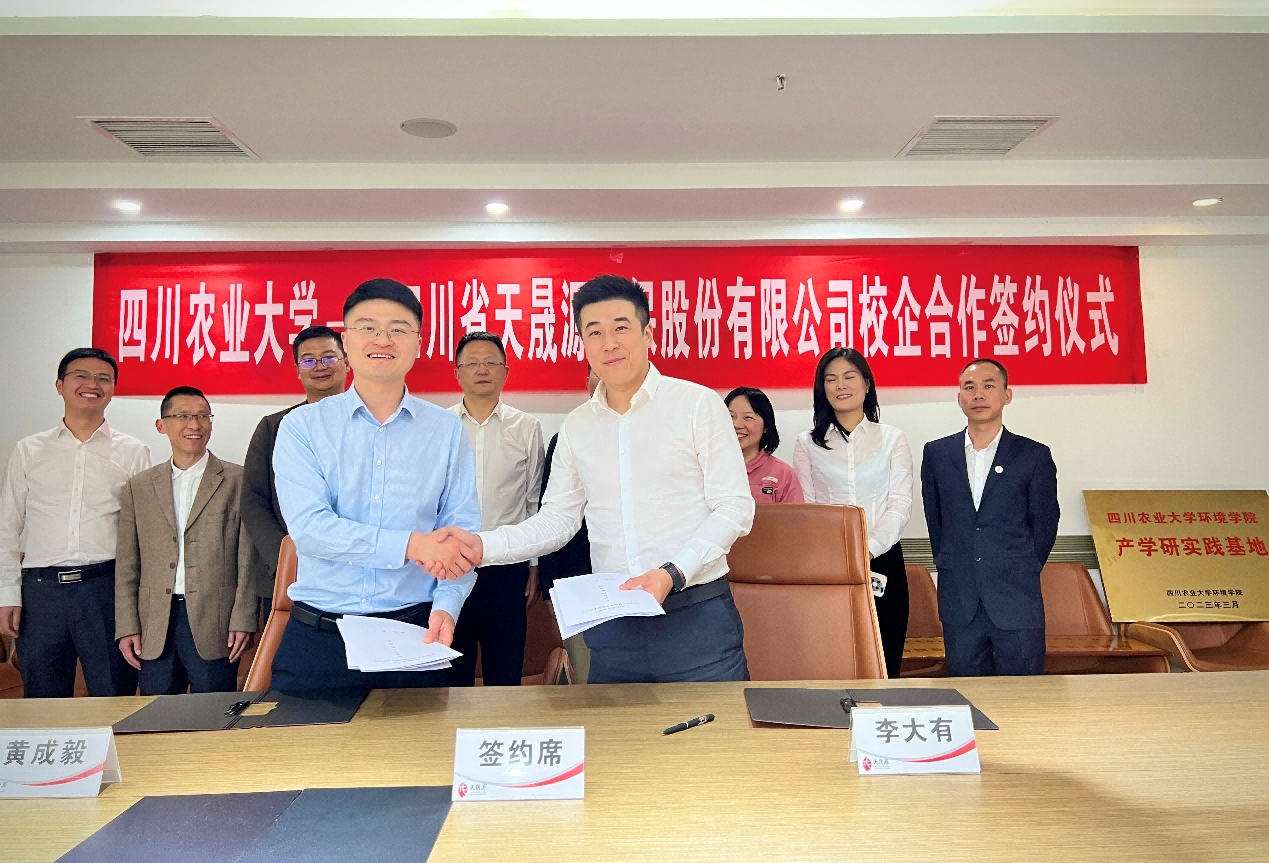 2023年5月10日上午,四川省天晟源環(huán)保股份有限公司 (以下簡稱“天晟源環(huán)?!? —四川農(nóng)業(yè)大學(xué)校企合作簽約授牌儀式在天晟源環(huán)保第一會議室舉行。天晟源環(huán)保董事長李大有、總經(jīng)理張恒,四川農(nóng)業(yè)大學(xué)環(huán)境學(xué)院黨委書記黃成毅、黨委辦主任兼團(tuán)委書記李曉輝出席。