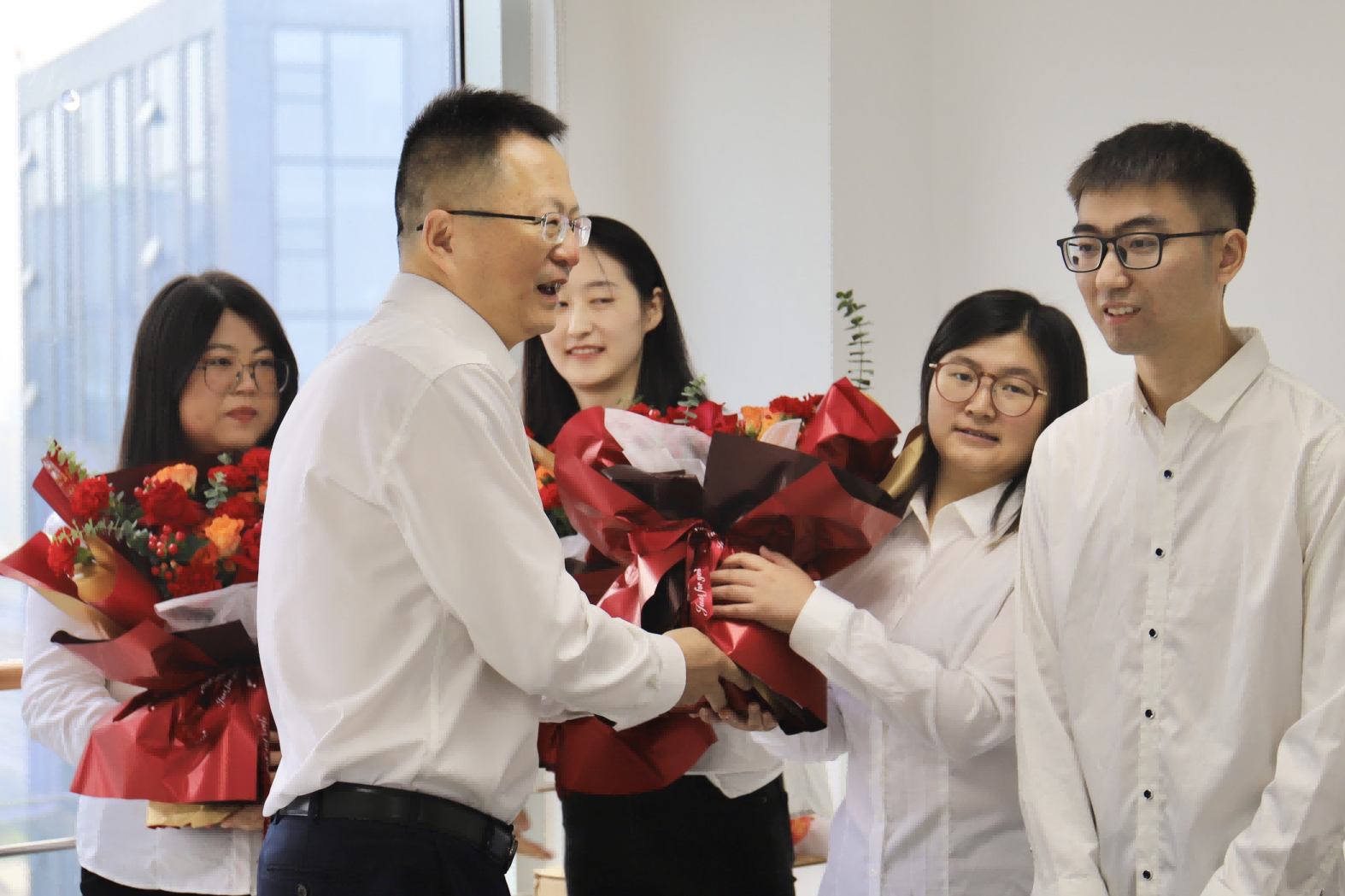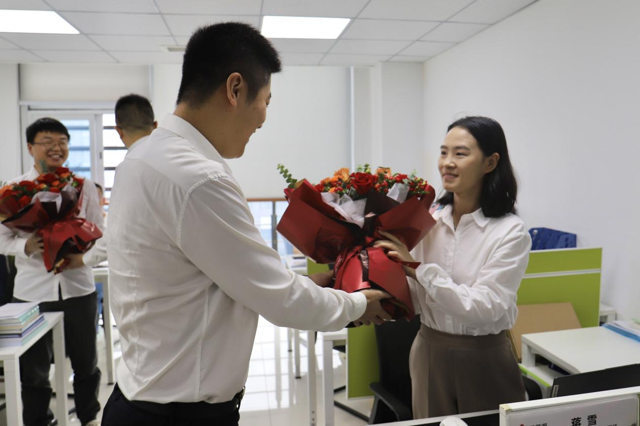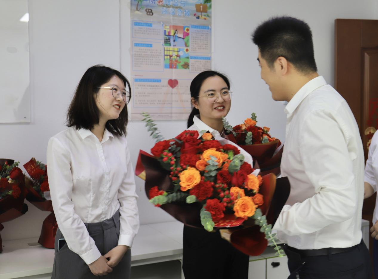 (李大有、張恒向員工贈(zèng)送鮮花)