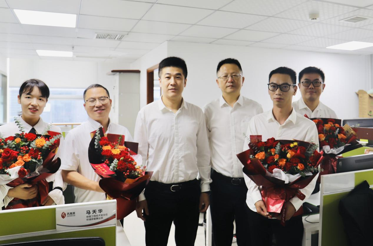 9月28日上午,天晟源環(huán)保黨支部書(shū)記、董事長(zhǎng)李大有,黨支部副書(shū)記、總經(jīng)理張恒代表公司向司齡新滿五周年員工贈(zèng)送鮮花,一方面感謝他們五年來(lái)的辛勤付出和忠誠(chéng)堅(jiān)守,一方面勉勵(lì)他們?cè)俳釉賲?,在今后的工作中取得更好的成?jī)。
