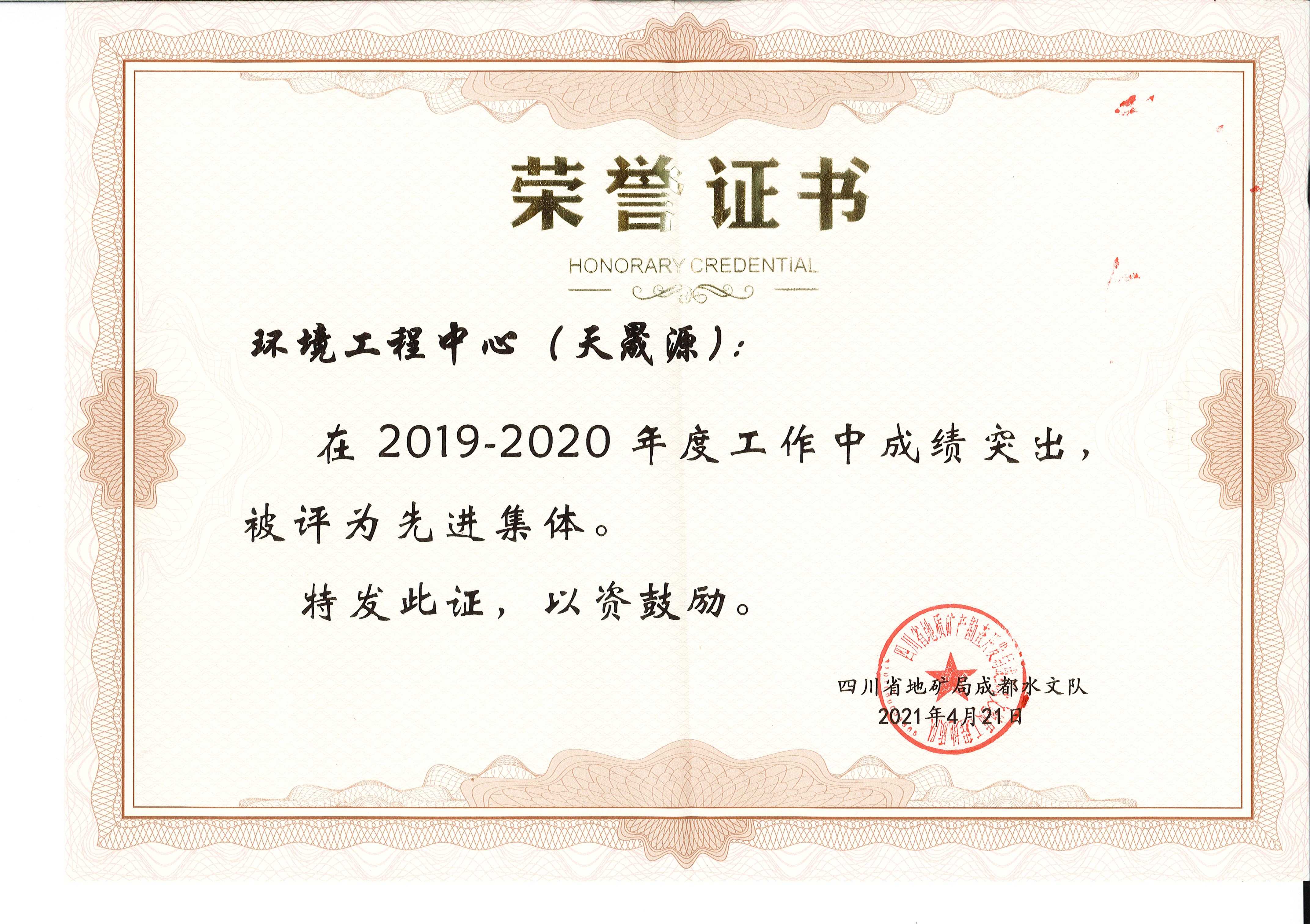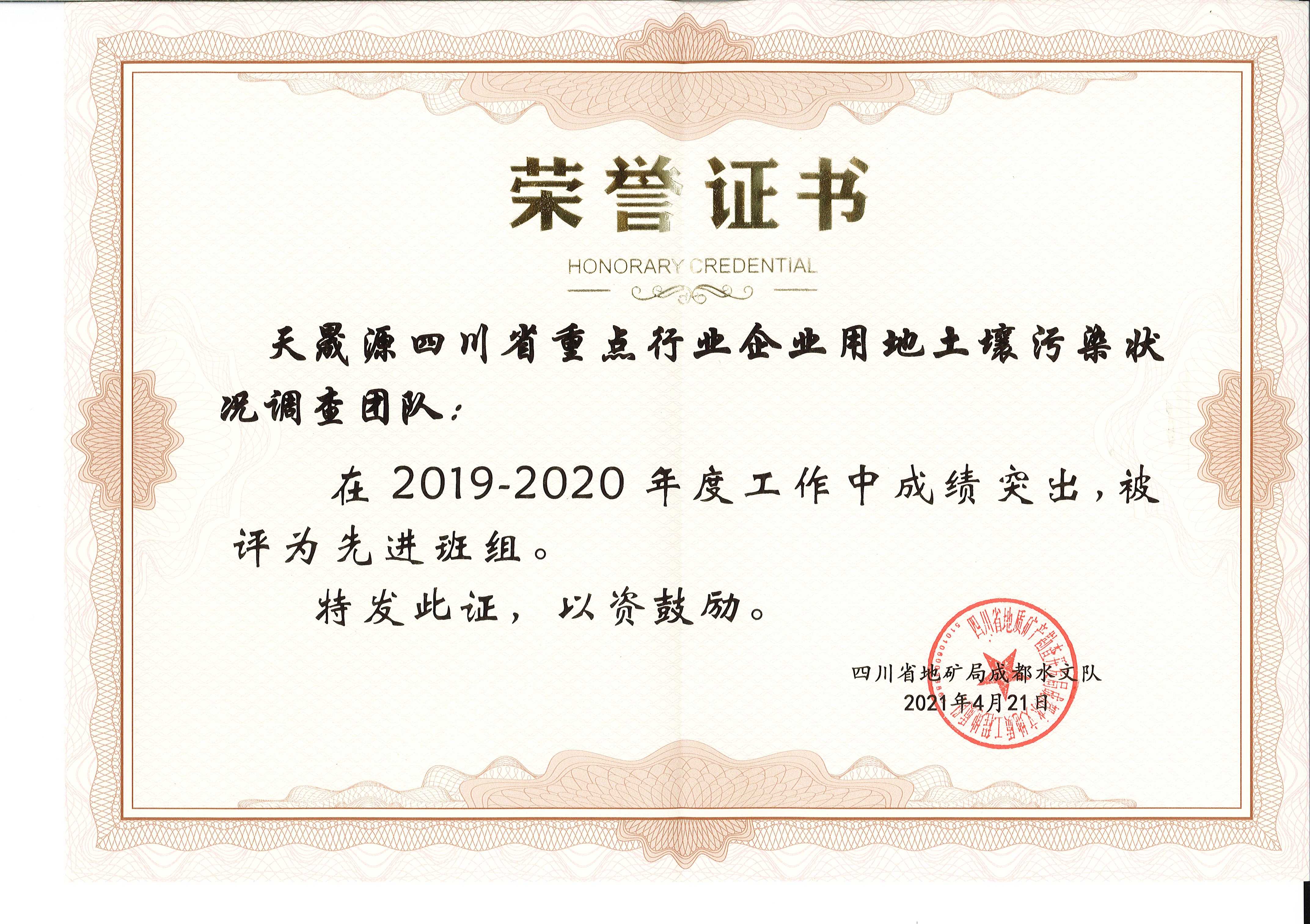 ?2021年4月25日,四川省地礦局成都水文隊(duì)印發(fā)了《關(guān)于表彰2019~2020年度先進(jìn)集體(班組)和先進(jìn)生產(chǎn)(工作)者暨最美川勘人的決定》(川地礦成水發(fā)〔2021〕16號),文件對成都水文隊(duì)2019-2020年度涌現(xiàn)出的先進(jìn)集體(班組)和個人進(jìn)行了表彰,四川省地質(zhì)工程勘察院環(huán)境工程中心(天晟源)喜獲“先進(jìn)集體”榮譽(yù),天晟源環(huán)保四川省重點(diǎn)行業(yè)企業(yè)用地土壤污染狀況調(diào)查團(tuán)隊(duì)斬獲了“先進(jìn)班組”稱號