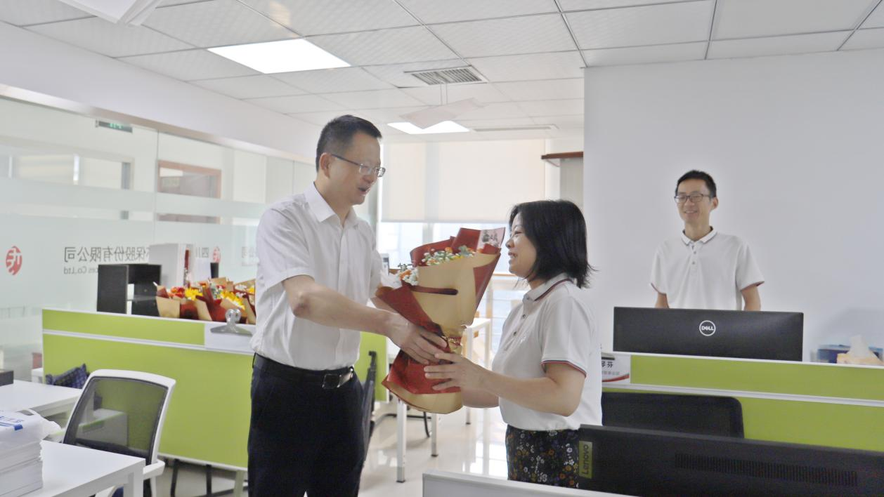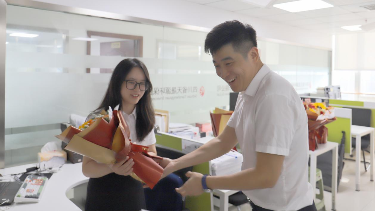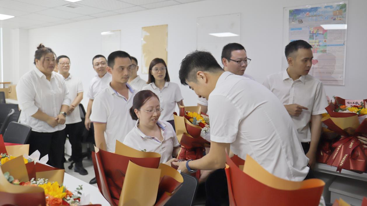9月27日上午,天晟源環(huán)保主要領導李大有、張恒、姚夢代表公司向司齡滿九周年員工贈送與鮮花,向新滿五周年員工贈送紀念銀幣,一方面感謝他們的辛勤付出與忠誠堅守,另一方面勉勵他們再接再厲,在今后的工作中取得更好的成績。