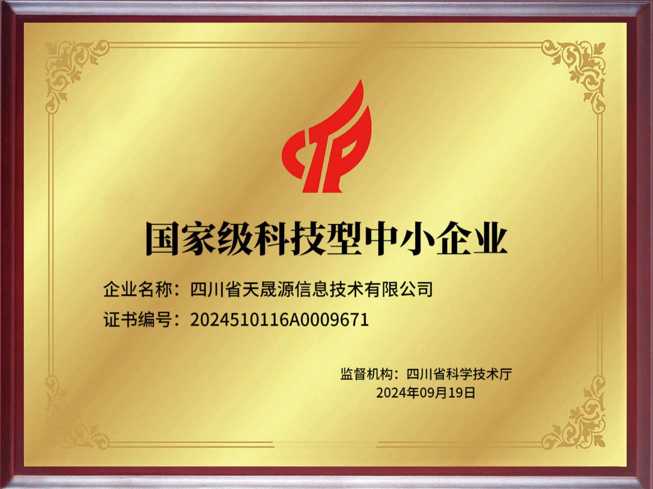 天晟源信息榮獲“國家級科技型中小企業(yè)” “創(chuàng)新型中小企業(yè)”雙重認定